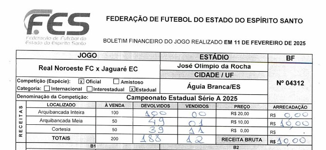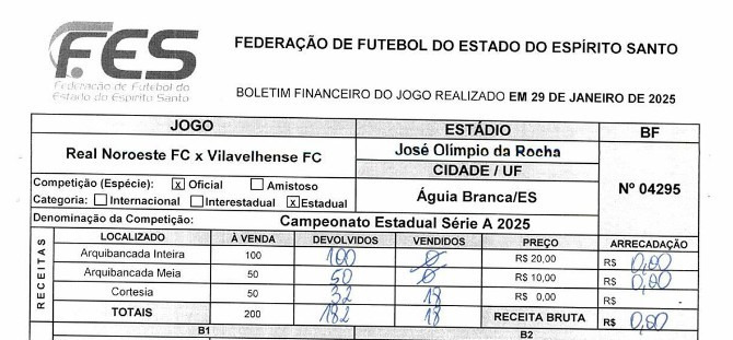 Leia a notícia completaApós dois públicos zerados, o Real Noroeste contou com um pagante em seu jogo. Foram disponibilizados 150 entradas. A renda bruta gerou R$ 10. Com as despesas, no entanto, o rombo na renda líquida chegou a R$ - 7.480,78. O Real Noroeste ainda terá mais dois jogos de punição.