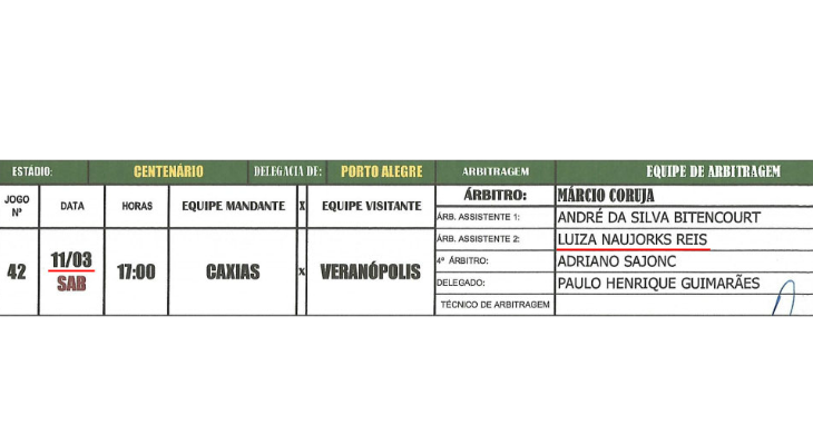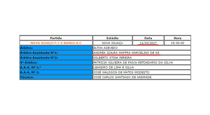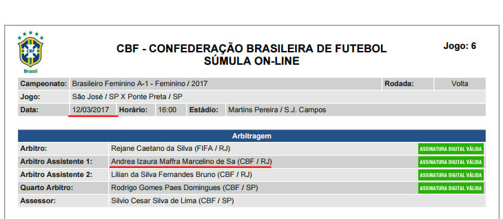A assistente Andréa Izaura Mafra Marcelino, por exemplo, esteve na vitória do Nova Iguaçu, por 2 a 1, sobre o Bangu no Estádio Laranjão, no último sábado, pela 1ª rodada da Taça Rio no Campeonato Carioca. A partida, segundo a súmula oficial, começou às 15h30 e foi encerrada às 17h24. Menos de 24 horas depois, ela já estava novamente em campo.Agora, pela 1ª rodada do Brasileirão Feminino. Andréa Izaura Mafra Marcelino trabalhou no empate, por 1 a 1, entre São José e Ponte Preta no Estádio Martins Pereira, em São José dos Campos. De Nova Iguaçu para São José dos Campos são 309 km e três horas e 45 minutos. O Sr. Goool também entrou em contato com a Federação de Futebol do Estado do Rio de Janeiro (FERJ) e com a Sindicato dos Árbitros Profissionais do Estado do Rio de Janeiro (SAPERJ), mas não obteve respostas.