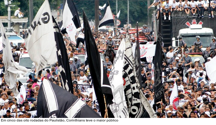Fechando o Top 3 das melhores médias da temporada 2013 há o Paulistão. O Estadual mais rentável do Brasil tem média de 6.076 pagantes. O carro-chefe do Estadual de São Paulo é o Corinthians. Das oito rodadas, em cinco o Timão teve o maior público. Em duas delas, o clube paulista ainda superou a marca de 30 mil pagantes. O maior público aconteceu no domingo passado durante o empate, por 2 a 2, com o rival Palmeiras - 34.010 pagantes.