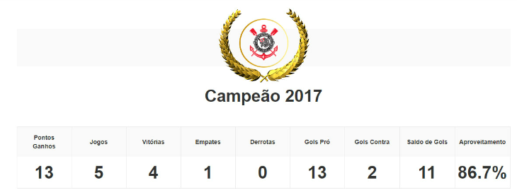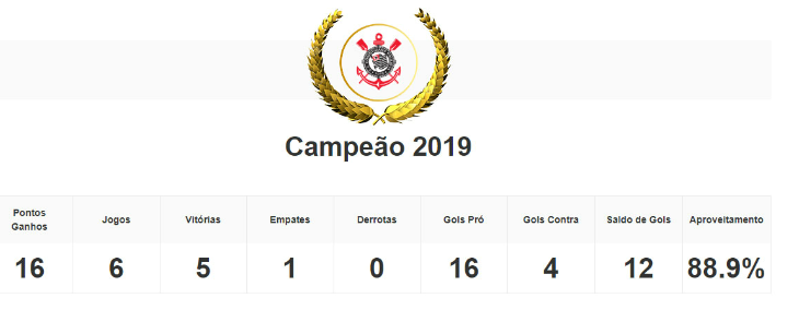 O Alvinegro do Parque São Jorge se tornou o 10º campeão invicto do torneio. Apenas o Atlético Huila, em 2018, deu a volta olímpica com derrota. O clube de São Paulo registrou cinco vitórias e um empate, além de 16 gols a favor e quatro tomados. Aproveitamento de 88,9%. Líder do grupo com América de Cali-COL, Libertad-PAR e Club Ñañas-EQU, o Corinthians também eliminou Santiago Morning-CHI nas quartas de final, América de Cali nas semis e Ferroviária na final.