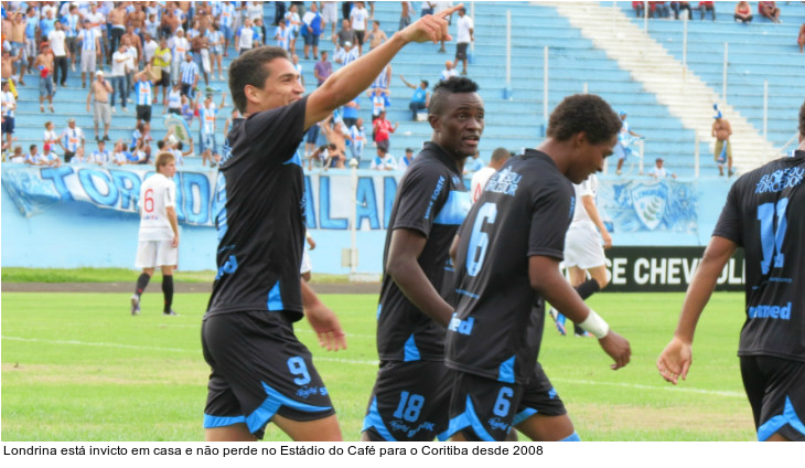Igualdade essa que foi conquistada em 2012, quando o Coritiba ficou no 1 a 1 com o Londrina no 1º Turno. No jogo de volta, no Couto Pereira, o Coxa venceu, por 1 a 0. Mas o Londrina não perde em casa para o Coritiba desde 2008, quando foi derrotado, por 2 a 0. O tempo é longo, mas neste período os rivais se enfrentaram apenas duas vezes. Além de 2012, o LEC bateu o rival, por 2 a 1, em 2009. Em 2010 e 2011, o Londrina estava na Segundona Paranaense.