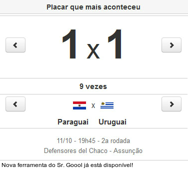 Para saber quais são os resultados mais repetidos das competições, basta clicar no menu "Campeonatos" e escolher o torneio. Dentro da página do campeonato, clicar em "classificação". Abaixo da pontuação dos clubes há o quadro com as estatísticas dos placares que mais aconteceram.