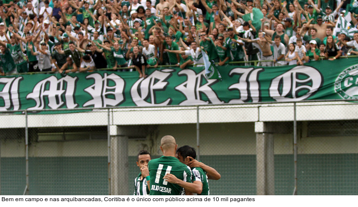 O clube do interior ocupa a terceira colocação, à frente do Atlético Paranaense, com média de 3.452 pagantes. O maior público do Operário foi no empate sem gols contra o Coritiba (5.103). O Furacão, por sua vez, está no quarto lugar, com 2.995 pagantes. O Atlético não tem jogado na Arena da Baixada, que está em reformas.