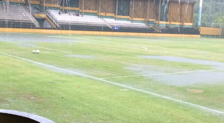 A 1ª rodada do Estadual do Rio de Janeiro deveria ter acabado na quarta-feira, mas teve um jogo adiado para esta quinta. Tigres do Brasil e Cabofriense não conseguiram jogar no Estádio Los Larios, em Duque de Caxias, por causa da forte chuva que caiu e do campo alagado. O gramado, aliás, virou uma "piscina". O árbitro Maurício Machado Coelho Júnior até esperou por quase três horas, mas o temporal não dissipou e o campo se manteve com muita água.
