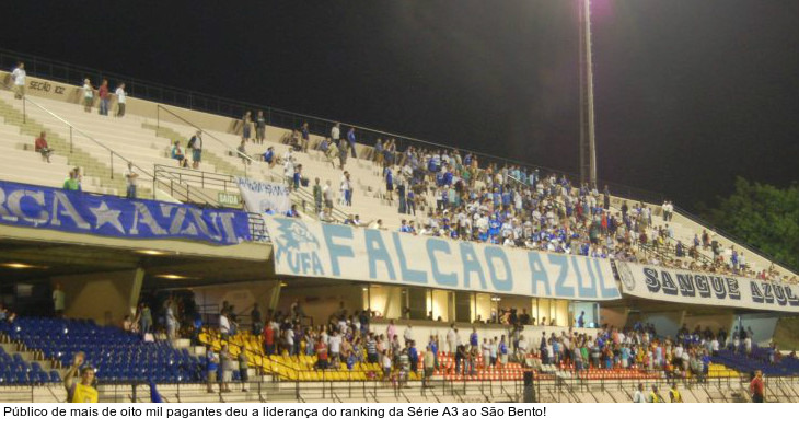São Paulo - Campeão da Série A3 do Campeonato Paulista, o São Bento também garantiu a liderança no ranking de público pagante da Edição 2013. No jogo do título - 1 a 1 com o Batatais -, o Bentão arrastou 8.125 pagantes ao Estádio Walter Ribeiro, em Sorocaba, e garantiu o primeiro lugar. (Confira o ranking completo AQUI!)