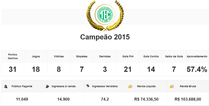 Pará - O Sr. Goool, nesta segunda-feira, inicia sua saga pelos campeões estaduais de 2015. Em imagens, o Sr. Goool trará as campanhas de todos os vencedores separados por região. O Norte abrirá esta caminhada revelando a pontuação, a quantidade de jogos, vitórias, empates, derrotas, gols pró, gols contra, saldo de gols e aproveitamento, além dos dados das arquibancadas dos campeões.