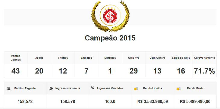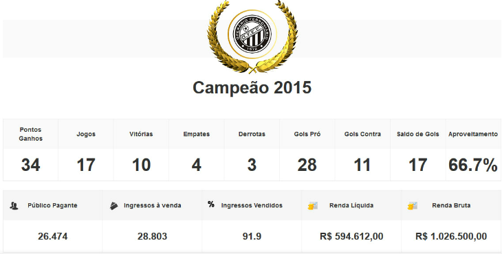 Santa Catarina - O Sr. Goool, nesta quinta-feira, último dia de 2015, encerra a saga pelos campeões estaduais. Após os vencedores do Norte, Centro-Oeste, Nordeste e Sudeste, o Sr. Goool apresentará - em imagens - as campanhas dos campeões do Sul. O histórico revela a pontuação, a quantidade de jogos, vitórias, empates, derrotas, gols pró, gols contra, saldo de gols e aproveitamento, além dos dados nas arquibancadas dos campeões.
