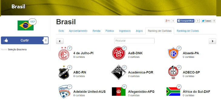A outra aba na página de clubes é o "ranking de curtidas". Agora, o torcedor internauta poderá curtir seu clube do coração e o Sr. Goool ainda transformou esta interação em ranking. Cada torcedor internauta só poderá dar uma curtida no clube do coração. Assim teremos dados mais limpos e reais. O sistema de busca também ajudará você a encontrar seu clube ou o rival.