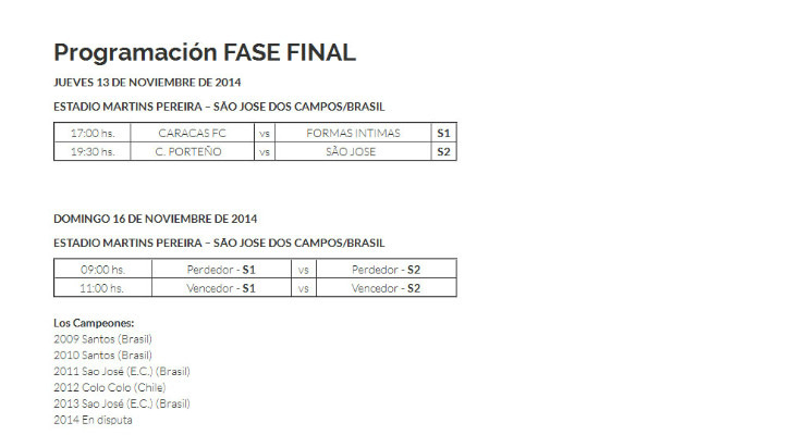 O São José chega para a final com aproveitamento de 100%. São quatro vitórias em quatro jogos, além de 18 gols a favor (melhor ataque) e apenas dois contra (melhor defesa). O Caracas, por sua vez, tem dois triunfos e dois empates. O clube venezuelano balançou as redes 11 vezes e levou nove gols.